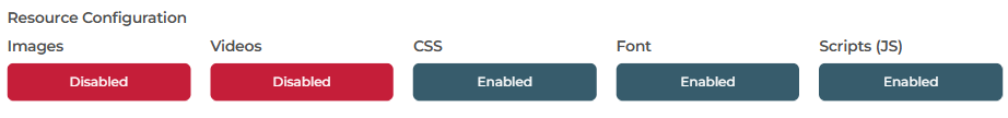 13. Resource Configuration: Enable or disable specific page elements such as Images, Videos, CSS, Fonts, and Scripts (JS). Disabling unnecessary resources can significantly reduce bandwidth usage and speed up page loading.