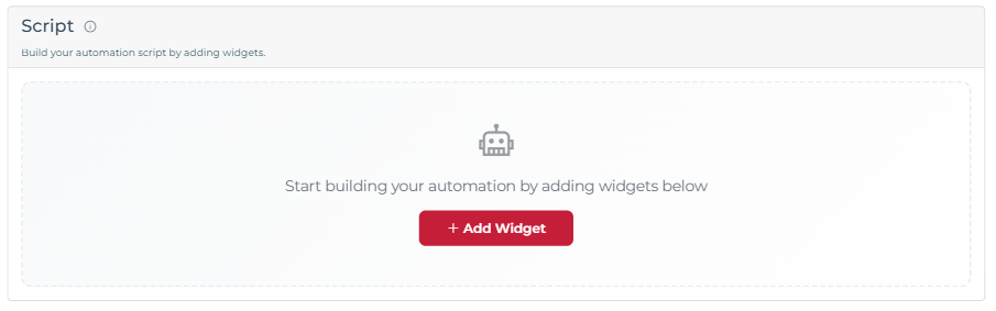 7. Script: Define a sequence of automated actions for the browser to perform on your target pages. You can add widgets such as URL Navigation, Wait, Scroll, and Click to simulate realistic user behavior. Please note that actions are executed in order from top to bottom.